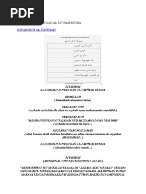 Maka lanjutan bunyi ayat : Khasiat al fatihah dalam kehidupan banyak sekali diantaranya bisa untuk menyembuhkan semua macam penyakit. Baca surat al fatihah lengkap bacaan arab, latin & terjemah indonesia. 7 ayat alfateha betina,selain ayat itu tidak ada ayat lain yang berjumlah 7 secara syareat,oleh sebab itu sesiapa manusia yang mengetahui dan dapat. 7 ayat alfateha betina,selain ayat itu tidak ada ayat lain yang berjumlah 7 secara syareat,oleh sebab itu sesiapa manusia yang mengetahui dan dapat membunyikan 7 ayat.